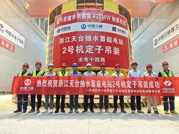 浙江天台抽水蓄能电站单机容量为国内抽蓄机组之最,是国内首台单机容量达425兆瓦的机组。电站机电安装工程任务由业内有“安装尖锋”之称的水电十四局机电安装调试团队承担,其已承建的机组占全国投产抽蓄机组台数的26%,机组容量占比达31%。