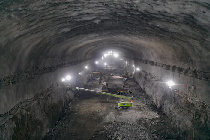 南山口抽水蓄能电站由中国三峡建工(集团)有限公司负责项目管理,水电三局一公司/中西非公司承建项目C4标,包括南山口抽水蓄能电站厂房发电系统及尾水系统土建及金属结构安装工程,主副厂房洞尺寸为312米×26米/27.8米×58.4米(长×宽×高)。自2024年8月开工以来,面对地下厂房洞室群埋深大、纵深长、断面大等特点,以及关键线路工期紧、高寒、高海拔资源降效等诸多挑战。项目团队合理调配施工资源,调整工作面分布,及时优化施工工序,积极探索高效施工与技术创新的完美结合,确保了在复杂恶劣的施工环境下,项目施工进度与工程质量的双向推进。