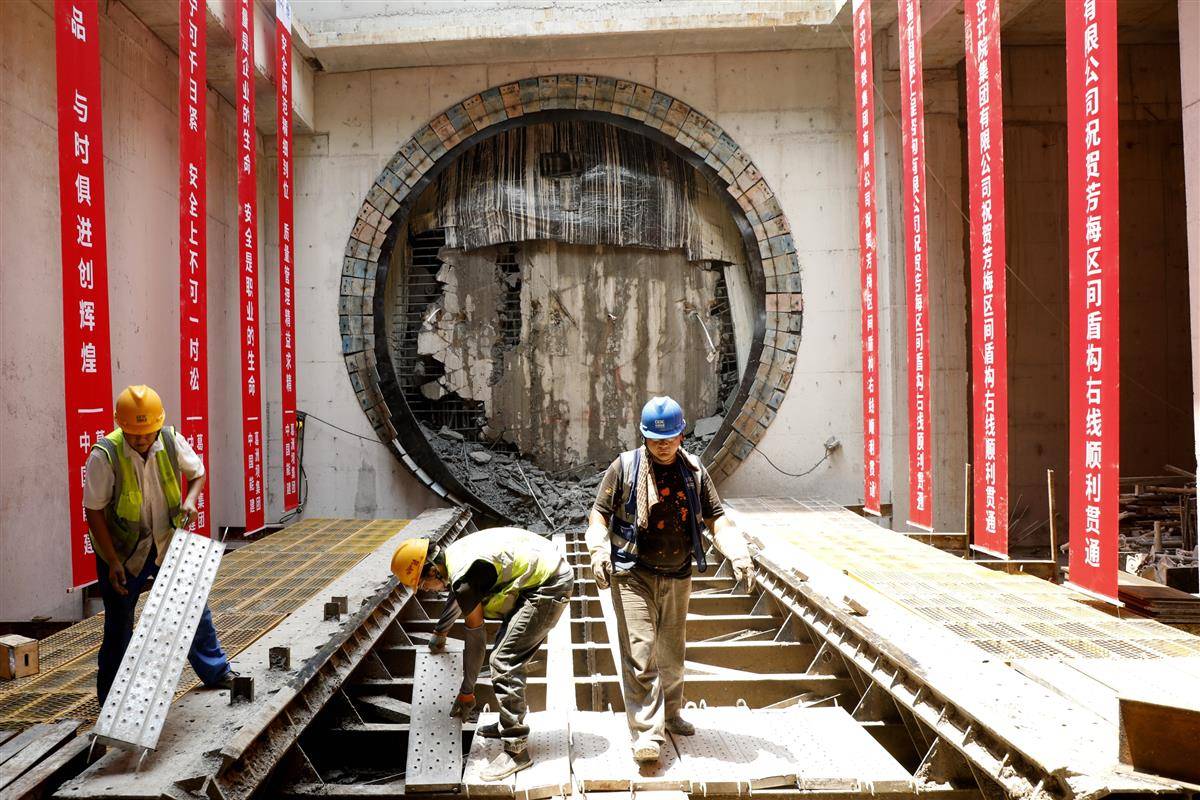 盾构机破壁前,地铁工人在进行最后的准备工作。(通讯员 袁永华 摄)