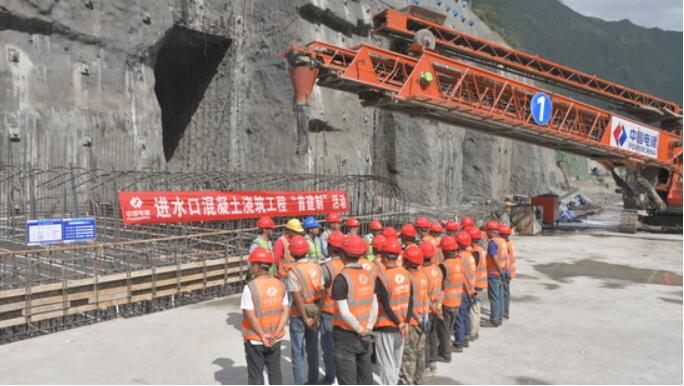 卡拉水电站位于四川省凉山彝族自治州木里藏族自治县境内,是雅砻江中游“一库七级”开发的第七级电站,作为国家九大清洁能源基地之一——雅砻江流域水风光一体化基地建设的又一座百万千瓦级骨干电站,总装机容量102万千瓦。电站进水口采用岸塔式进口,布置于工程右岸岸边,4 台机组进水口呈“一”字型并排布置,进水塔整体规模宏大,长122米,宽29米,高43米。进水口底板厚4米。相邻进水塔之间设结构缝,每个塔体结构独立。施工采用台阶式浇筑法,混凝土总浇筑方量高达12360.1立方米,施工组织难度大,质量要求高。