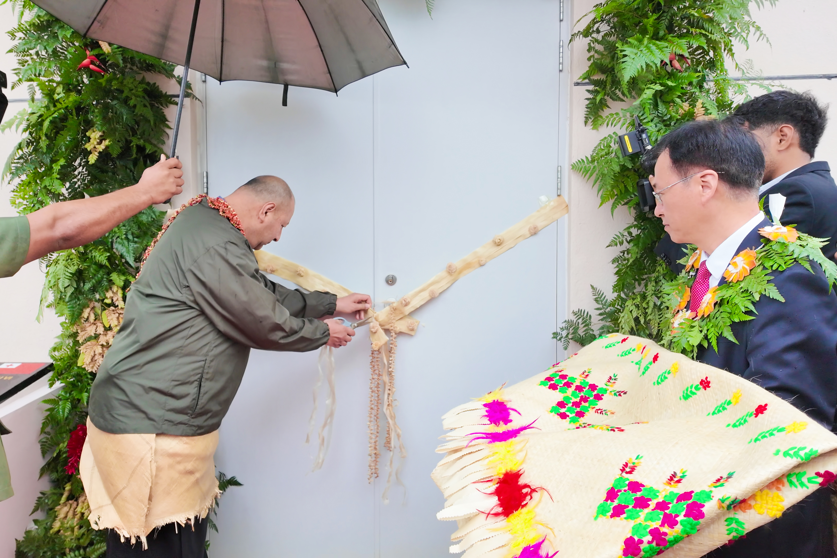 当地时间7月14日,中国能建葛洲坝电力公司承建的援汤加风力发电项目举行移交仪式,汤加王国国王图普六世出席仪式并剪彩。