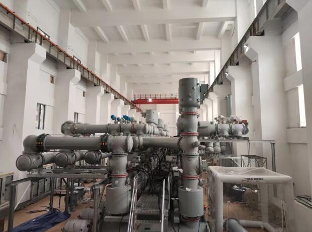 GIS(气体绝缘金属封闭开关设备)是电站内电能汇集、控制和输送的“主动脉”,其安装质量直接关乎电站安全稳定运行。金川水电站500千伏 GIS系统由特变电工生产,设备分置于地下主变洞500千伏电缆层及地面开关站GIS层,设备结构复杂、规模较大。其核心连接方式为:主变压器高压侧电能通过SF₆母线由联合单元接线汇集后,最终由两回500千伏高压电缆通过出线竖井送至地面开关站。