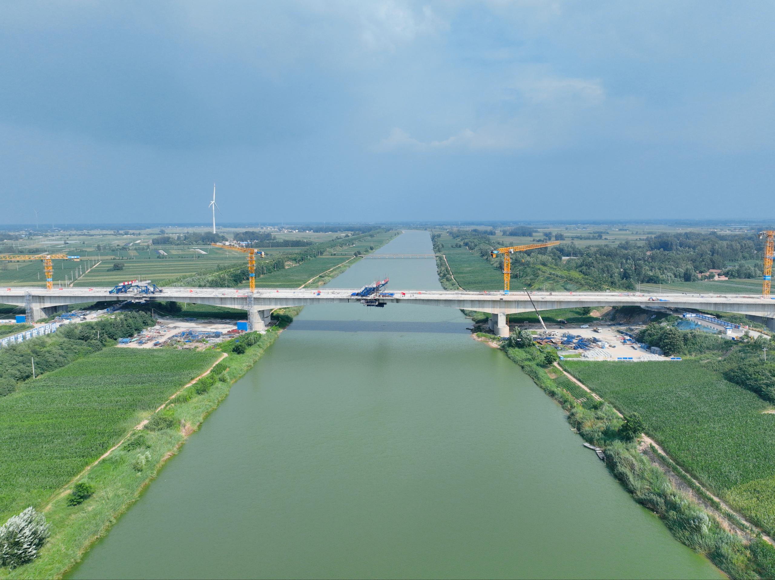 济商高速(菏泽段)一标段全长31.45千米,采用双向六车道高速公路标准建设,设计速度为120公里每小时。标段内共设有桥梁63座,其中东鱼河特大桥全长1301米,桥宽33米,主桥上部采用五跨一联的变截面连续箱梁设计,以挂篮悬臂浇筑施工,下部结构为矩形承台、矩形墩柱,是目前山东省在建高速公路中跨度最大的预应力混凝土连续梁桥。