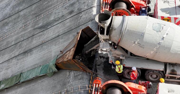 一切准备就绪后,首仓混凝土浇筑正式开始。施工现场,各类现代化机械设备有序运转,施工人员各司其职,整个工程推进有条不紊。混凝土从搅拌车卸料口倾泻而下,经溜槽注入仓面,施工人员迅速平仓,确保混凝土均匀覆盖钢筋网。随后进行振捣作业,排除气泡,保障混凝土密实度。卷扬机牵引无轨滑模匀速上行,边移动边挤压抹面,施工人员紧随其后进行二次收光,确保面板表面平整达标。在机械连续作业下,面板沿坡面自下而上不断延伸,逐步形成大坝的完整防渗层。