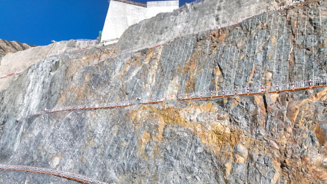 这座创新坝型的精妙之处,藏在结构设计的每一个细节里。在传统混凝土面板堆石坝上游侧底部,创新性嵌入混凝土重力坝段,通过水平周边缝与堆石坝面板紧密衔接,形成“重力坝约束+堆石坝主体”的复合结构。这一设计从根本上约束了坝体堆石体的变形,截至目前,大坝最大累计沉降量仅为448.0毫米,占坝高的0.298%,远低于行业平均水平,达到国际领先标准。
