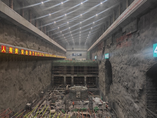 目前,电站整体工程进度已完成80%,其中1、2号主变压器室混凝土结构已完成,主变已就位,500千伏出线洞贯通,此次封顶的2号机组为地下厂房核心部分。第二台机组封顶施工中,项目部同时面对复杂地质条件和交叉作业等挑战,积极作为,一是成立“党员先锋岗”,在关键工序设立党员责任岗,在保安全质量情况下促进度;二是多次开展劳动竞赛,累计攻克技术难题12项;三是倒排工期,调整施工方案,实现“零缺陷”优良混凝土浇筑工艺,高质量封顶。