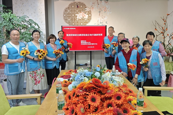 依托锦绣社区省级特色品牌“创富工坊”,中国能建葛洲坝建设公司主动融入社区治理,将企业退休职工管理服务延伸至社区,社区开辟专属活动空间,企业精选身体健康的人员组建核心团队,通过“环保材料包供给—创意手作培训—志愿服务认证”全链条机制,让原本平凡的材料在银发匠人手中焕发新生,制作出象征幸福与希望的仿真花等手工艺品。