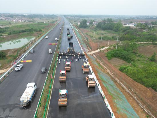 【中国新闻网】和襄高速项目全线首个上面层沥青试验段摊铺完成
