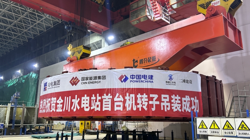 5月20日,金川水电站首台机组(4号机组)转子吊装就位。